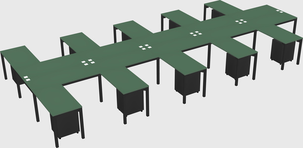 Green Shared L-shaped Office Desk With Metal Mobile Drawers For 10 Persons