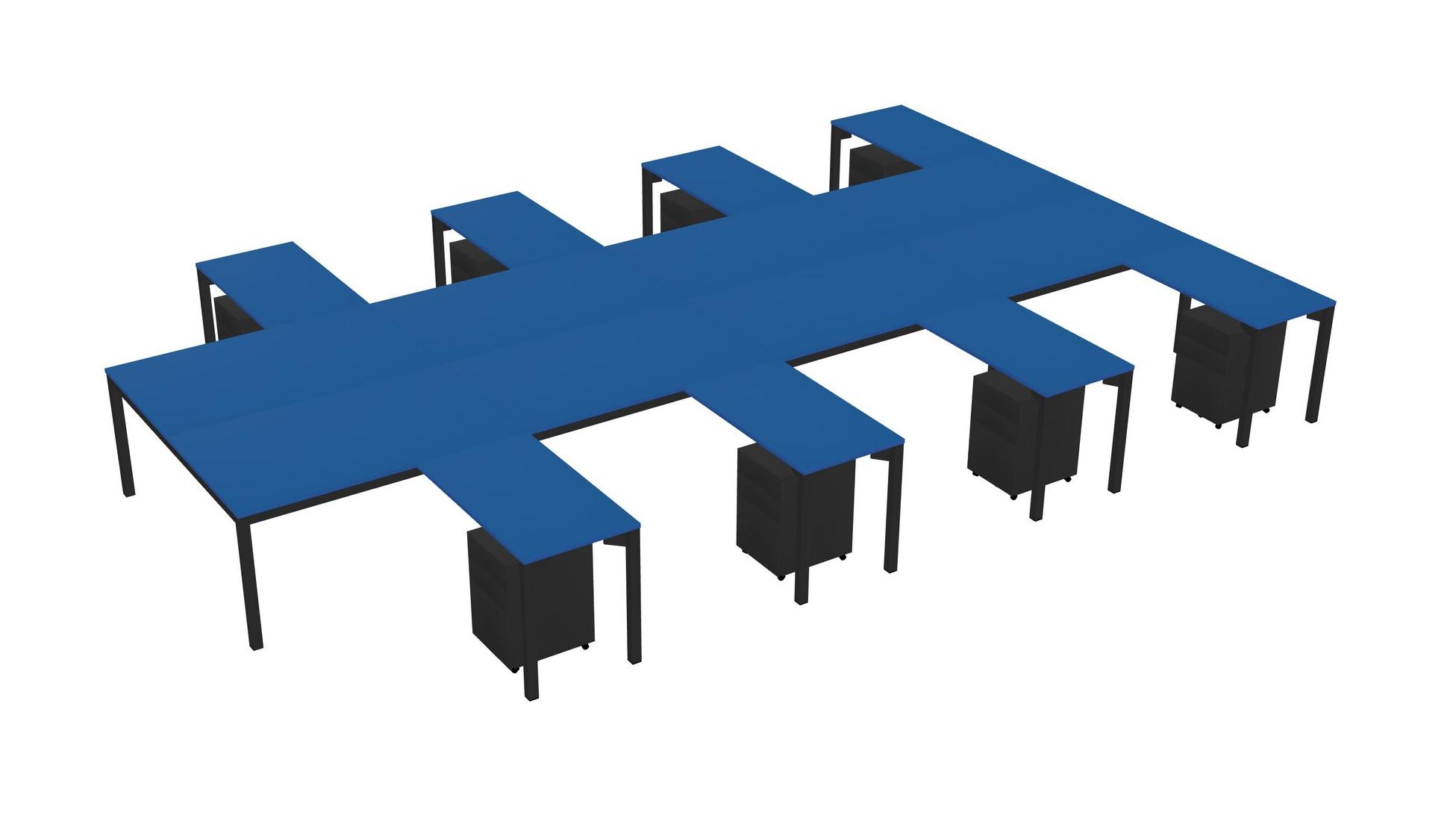 Prism Blue Shared L-shaped Office Desk With Metal Mobile Drawers For 8 Persons