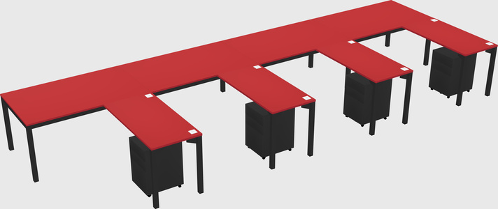 Prism Red Shared L-shaped Office Desk With Metal Mobile Drawers For 4 Persons