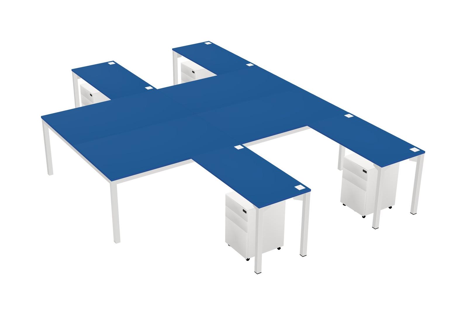 Prism Blue Shared L-shaped Office Desk With Metal Mobile Drawers For 4 Persons