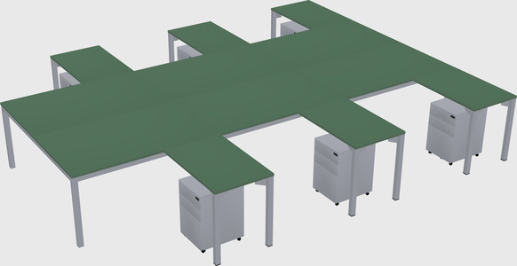 Green Shared L-shaped Office Desk With Metal Mobile Drawers For 6 Persons