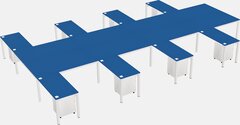 Prism Blue Shared L-shaped Office Desk With Metal Mobile Drawers For 8 Persons