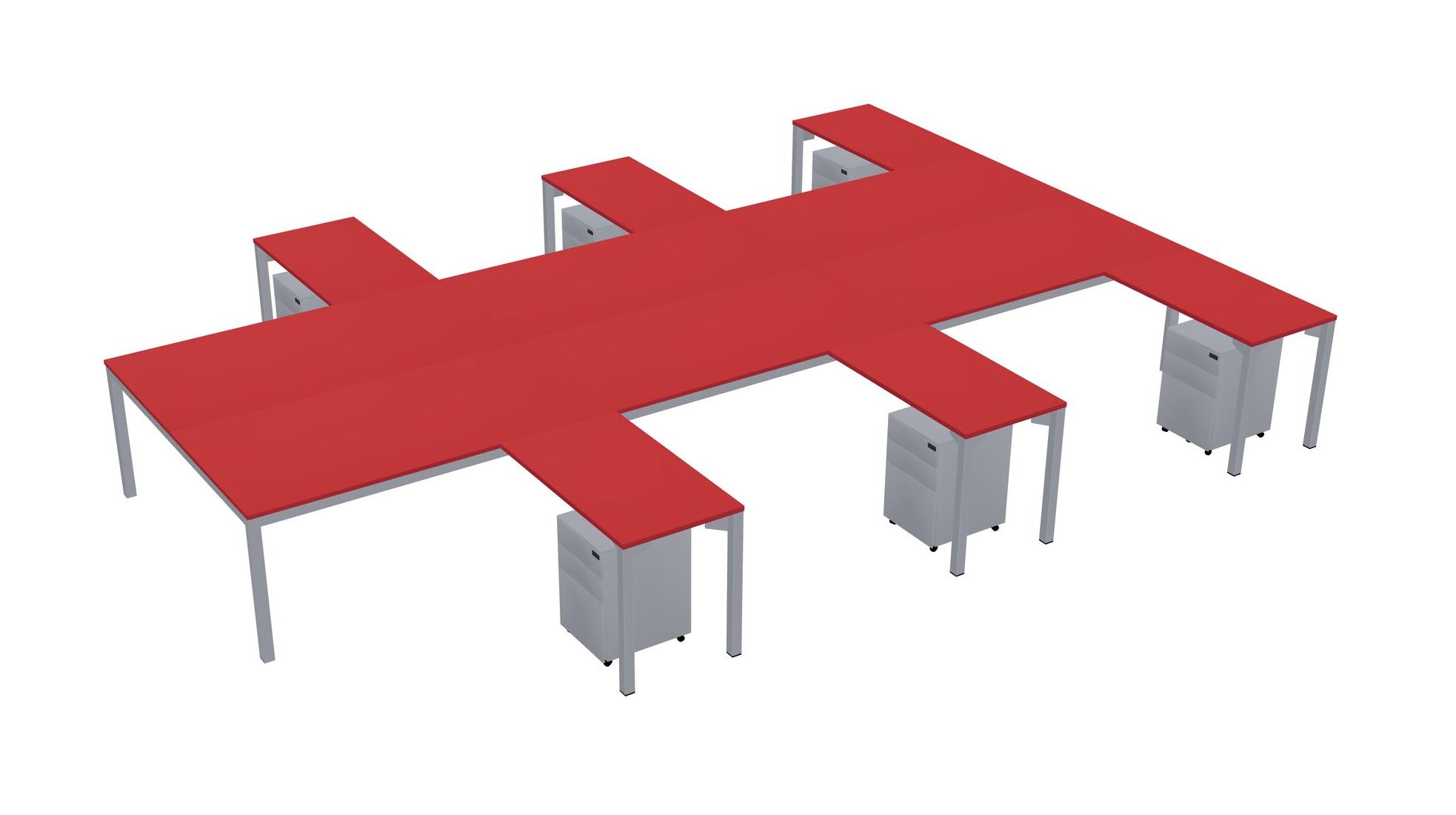 Prism Red Shared L-shaped Office Desk With Metal Mobile Drawers For 6 Persons