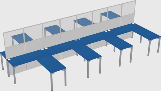 Prism Blue Shared L-shaped Office Desk With Metal Mobile Drawers For 8 Persons