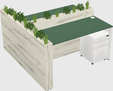 Green Shared L-shaped Office Desk With Metal Mobile Drawers For 6 Persons