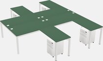 Prism Red Shared L-shaped Office Desk With Metal Mobile Drawers For 4 Persons