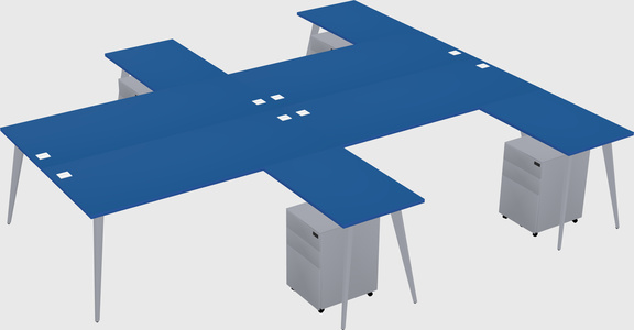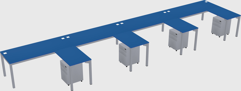 Prism Blue Shared L-shaped Office Desk With Metal Mobile Drawers For 4 Persons