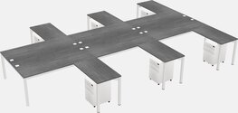 Green Shared L-shaped Office Desk With Metal Mobile Drawers For 6 Persons