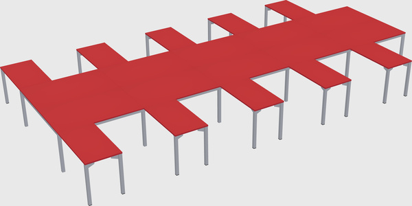 Prism Red Shared L-shaped Office Desk For 10 Persons