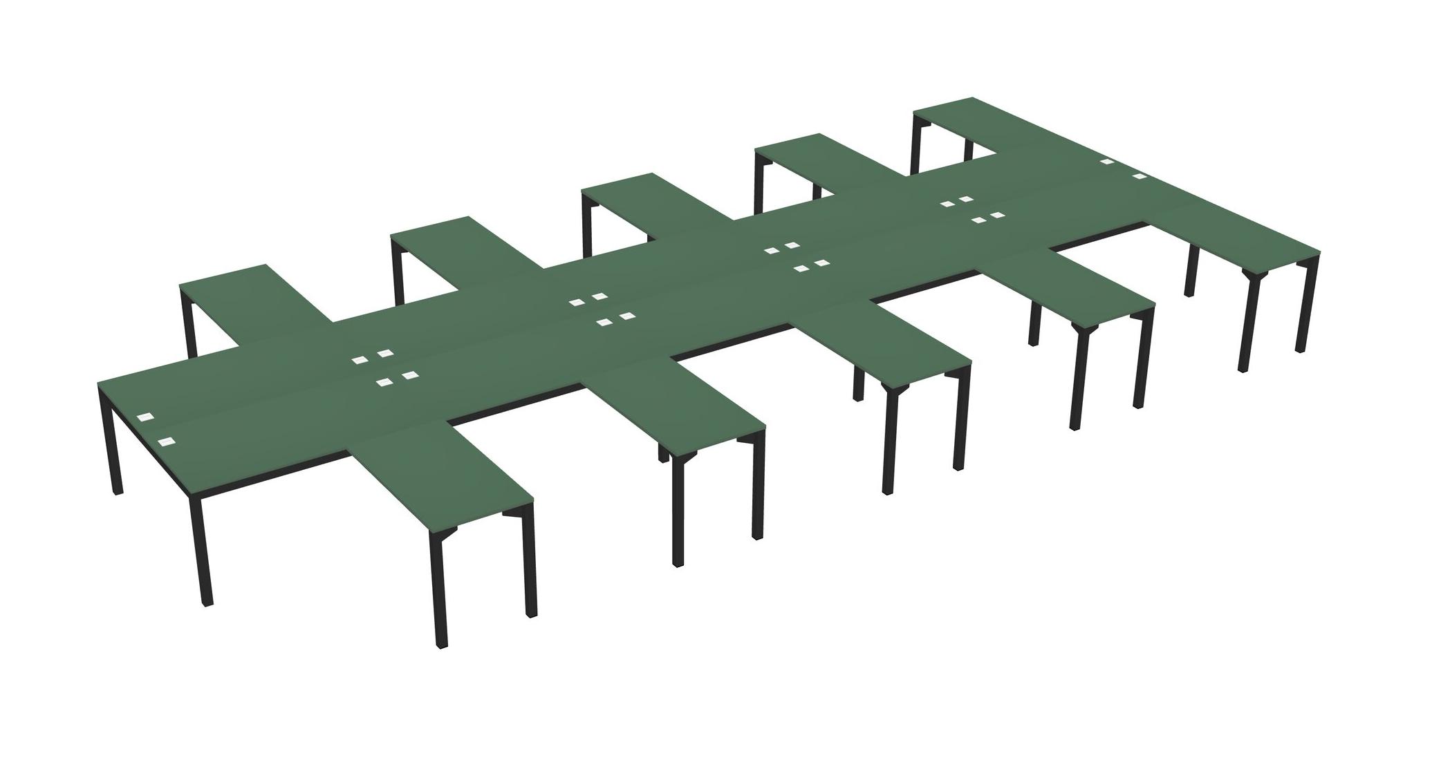 Green Shared L-shaped Office Desk For 10 Persons