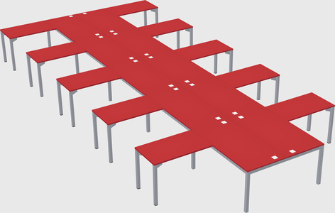 Prism Red Shared L-shaped Office Desk For 10 Persons