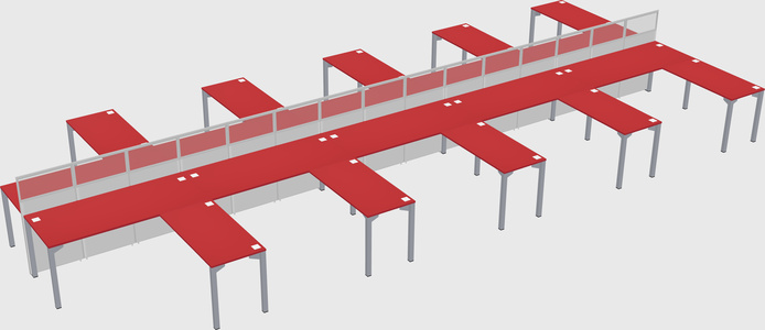 Prism Red Shared L-shaped Office Desk For 10 Persons