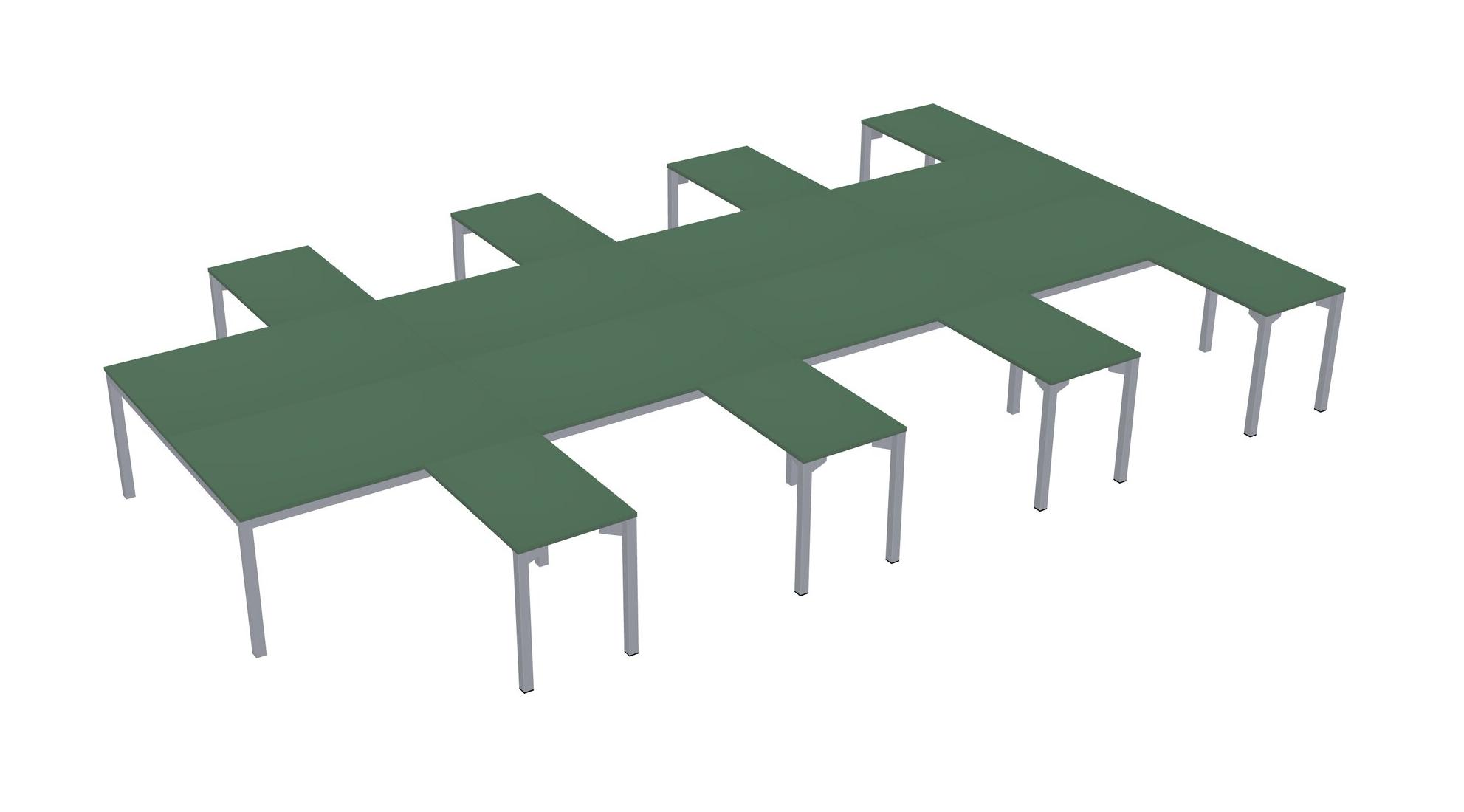 Green Shared L-shaped Office Desk For 8 Persons