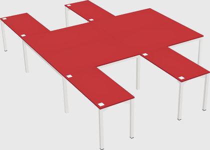 Prism Red Shared L-shaped Office Desk For 4 Persons
