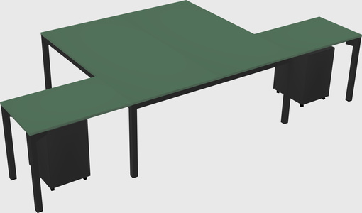 Green Shared L-shaped Office Desk With Metal Mobile Drawers For 2 Persons