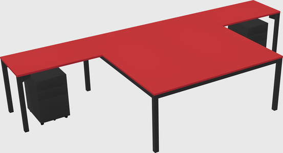 Prism Red Shared L-shaped Office Desk With Metal Mobile Drawers For 2 Persons