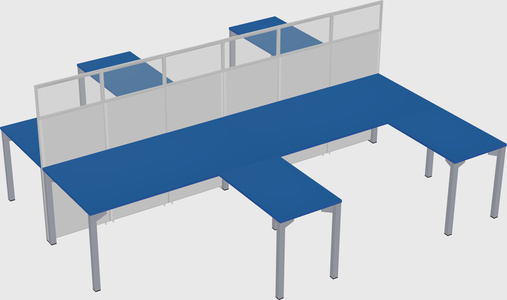 Prism Blue Shared L-shaped Office Desk For 4 Persons