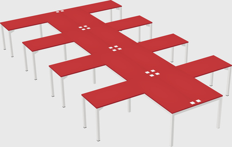 Prism Red Shared L-shaped Office Desk For 8 Persons