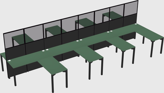 Green Shared L-shaped Office Desk For 8 Persons