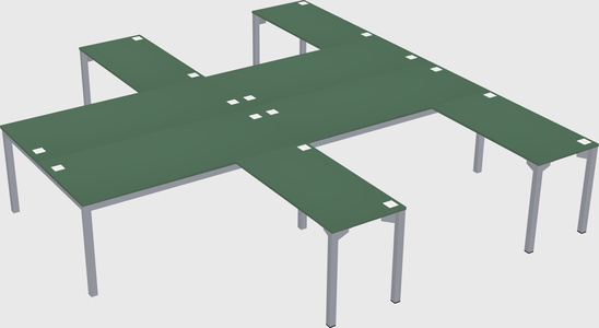 Green Shared L-shaped Office Desk For 4 Persons