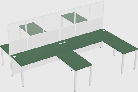 Green Shared L-shaped Office Desk For 4 Persons