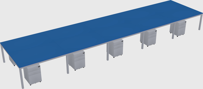 Prism Blue Shared Rectangular Office Desk With Metal Mobile Drawers For 10 Persons