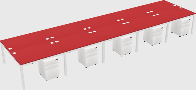 Prism Red Shared Rectangular Office Desk With Metal Mobile Drawers For 10 Persons