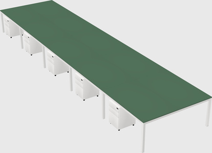 Green Shared Rectangular Office Desk With Metal Mobile Drawers For 10 Persons