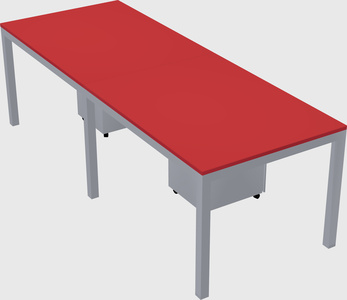 Prism Red Rectangular Office Desk With Metal Mobile Drawers For 2 Persons