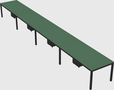 Green Rectangular Office Desk With Metal Mobile Drawers For 4 Persons