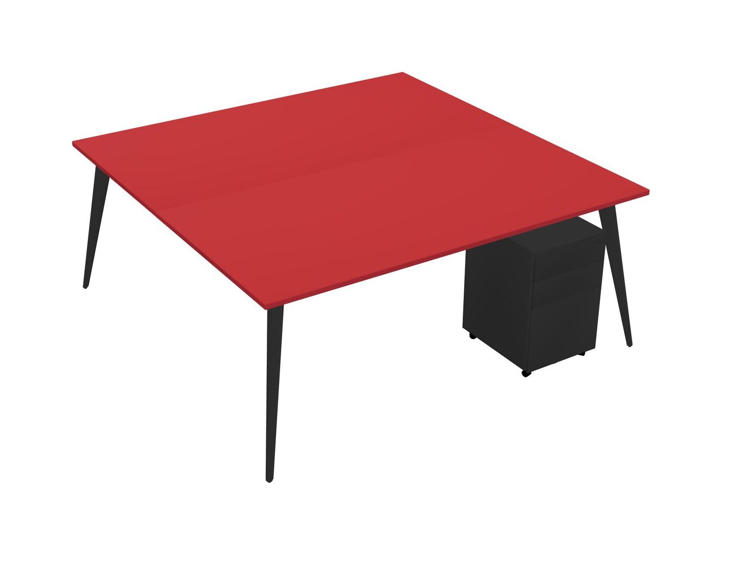 Prism Red Shared Rectangular Office Desk With Metal Mobile Drawers