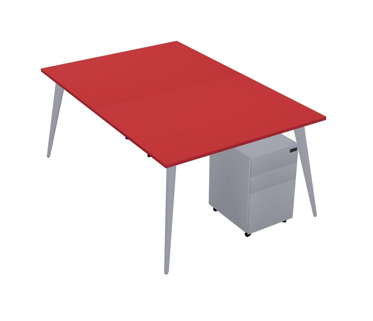 Prism Red Shared Rectangular Office Desk With Metal Mobile Drawers