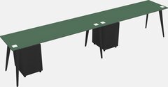Green Rectangular Office Desk With Metal Mobile Drawers