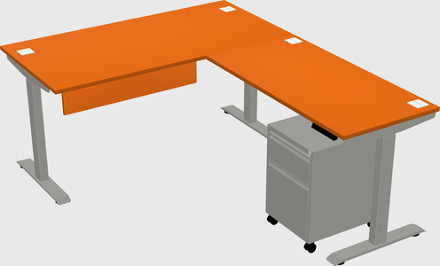 Orange Parallel Dual Motor Electric Height Adjustable Desk With Modesty Panel And Metal Mobile Drawers - Commercial Grade