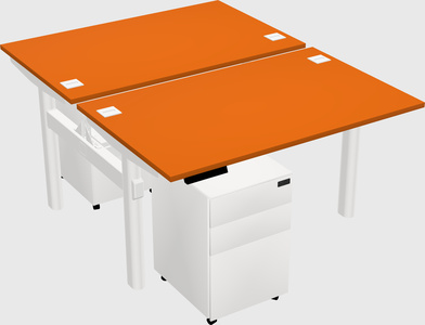Orange Shared Dual Motor Electric Height Adjustable Desk With Metal Mobile Drawers