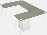 Grey Shadows U-shaped Office Desk Plus Metal Mobile Drawers