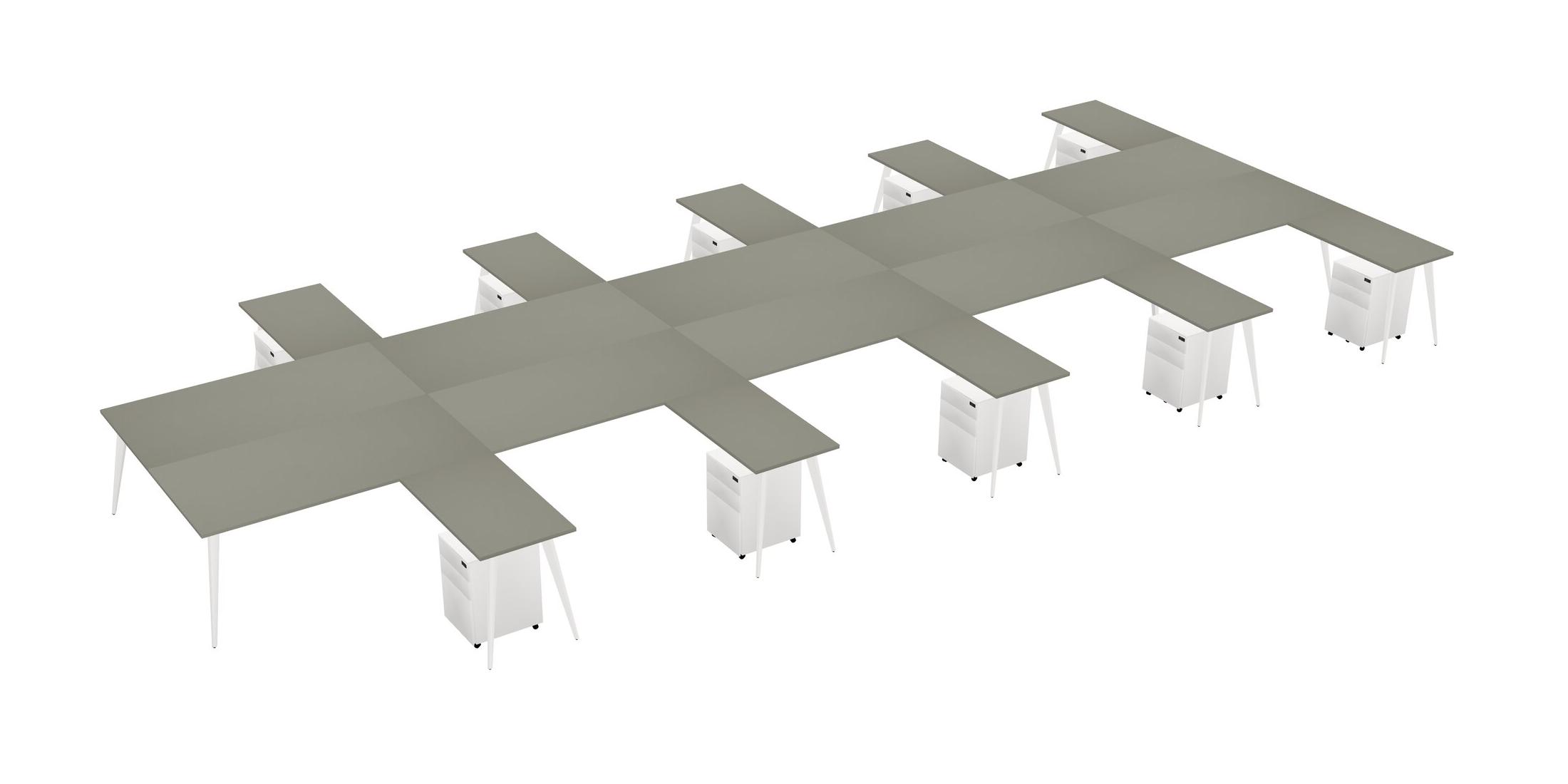 Grey Shadows Shared L-shaped Office Desk With Metal Mobile Drawers