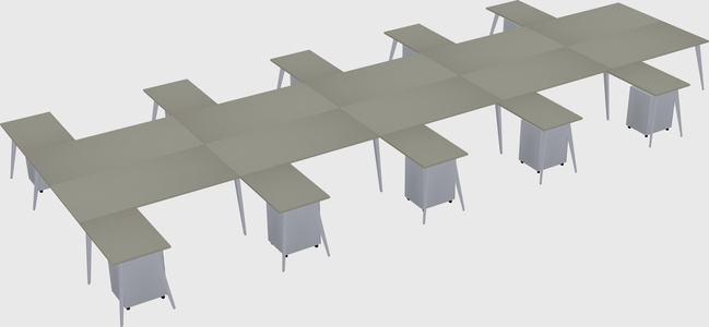 Grey Shadows Shared L-shaped Office Desk With Metal Mobile Drawers