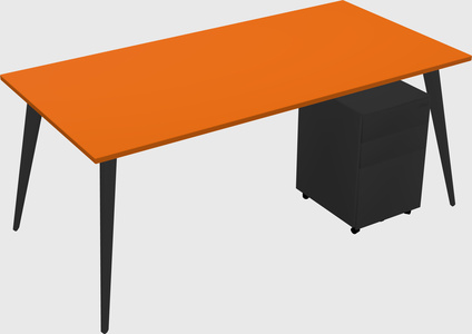Orange Shared L-shaped Office Desk With Metal Mobile Drawers