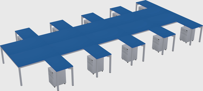 Prism Blue Shared L-shaped Office Desk With Metal Mobile Drawers