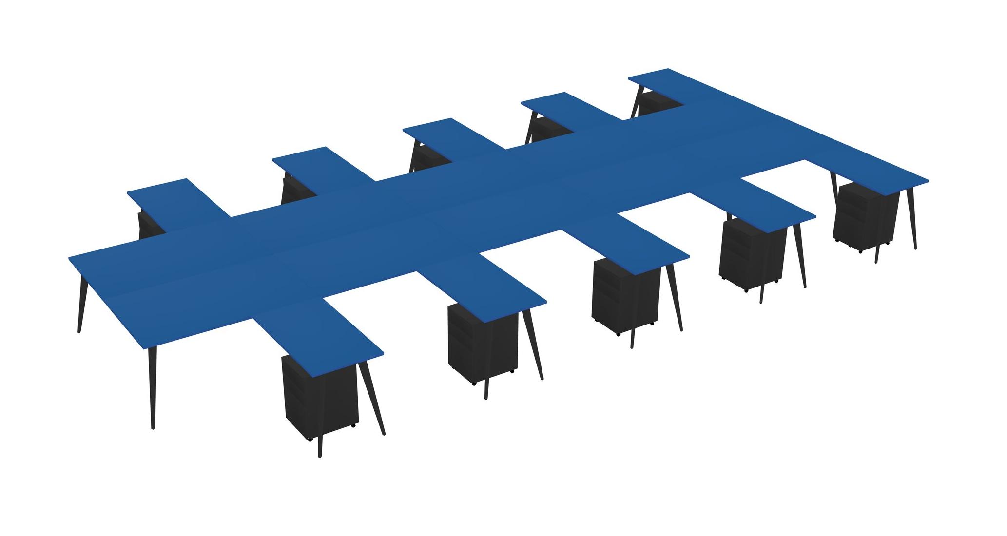 Prism Blue Shared L-shaped Office Desk With Metal Mobile Drawers