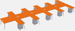 Prism Blue Shared L-shaped Office Desk With Metal Mobile Drawers