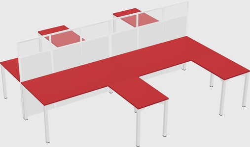 Prism Red Shared L-shaped Office Desk With Metal Mobile Drawers