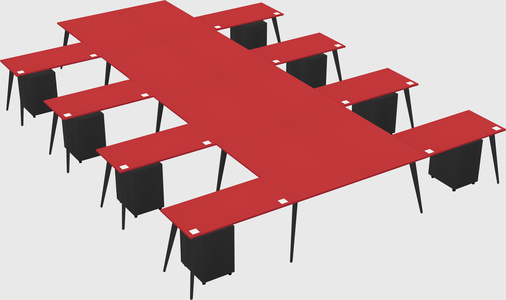 Prism Red Shared L-shaped Office Desk With Metal Mobile Drawers