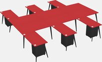 Prism Red Shared L-shaped Office Desk With Metal Mobile Drawers