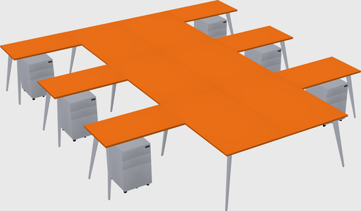 Orange Shared L-shaped Office Desk With Metal Mobile Drawers