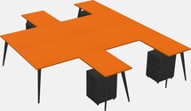 Prism Red Shared L-shaped Office Desk With Metal Mobile Drawers