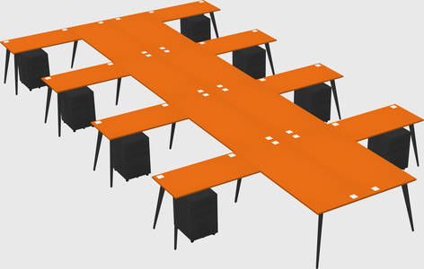 Orange Shared L-shaped Office Desk With Metal Mobile Drawers