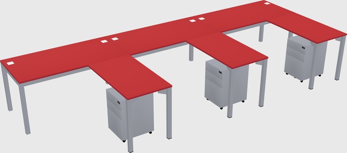 Prism Red Shared L-shaped Office Desk With Metal Mobile Drawers