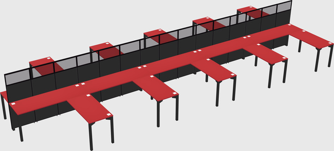 Prism Red Shared L-shaped Office Desk